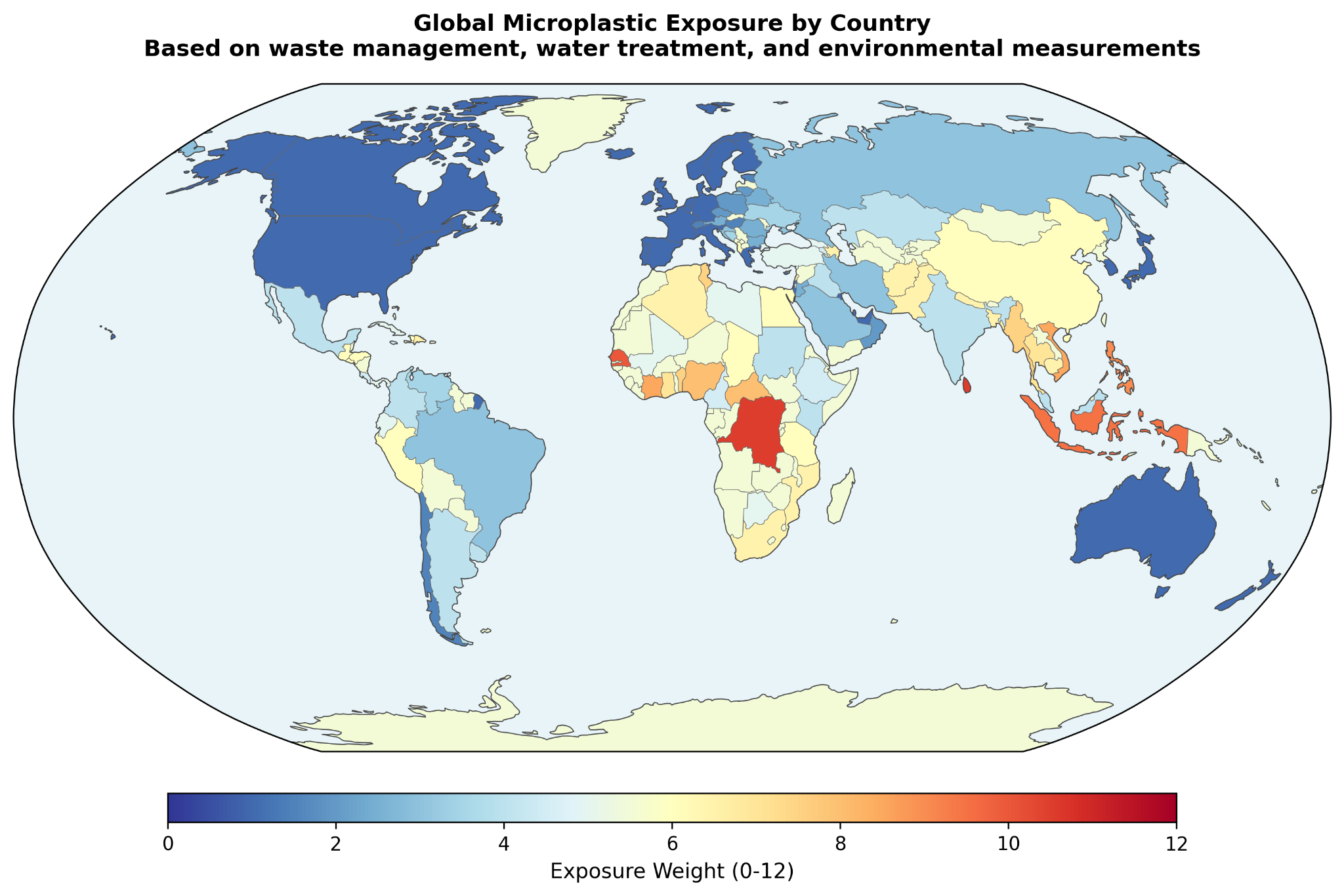 A country level model of how waste systems, water infrastructure, and measurement constraints shape relative exposure