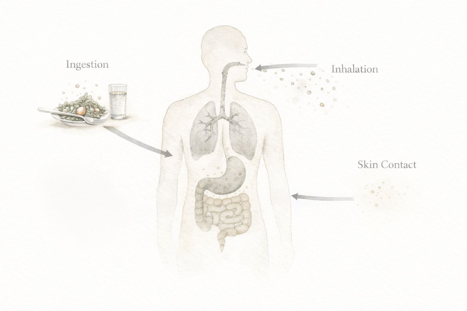 - Humans are exposed through food, water, and air